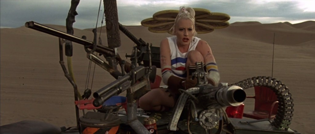 Si bien las primeras dos cintas de muertos vivientes dirigidas por Romero no presentaron muertos vivientes memorables (digo, más allá del zombie harekrishna de El amanecer de los muertos [Romero, 1978]), esta parodia sí que lo hace. Y es que ¿cómo olvidar a la muy sexy punk ninfómana conocida como Trash (Linnea Quigley)? Como en buena película de explotación, Quigley nos regala un buen número de escenas injustificadas de desnudos, y caray, hasta después de convertirse en un cadáver andante se ve sexy. Estas imágenes, por cierto, se usaron como póster de la cinta para el mercado europeo.