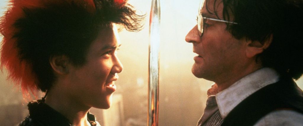 Por otro lado, en ese guión hay otros elementos que me parecen más que rescatables. Sobre todo, me pareció muy interesante el elemento de metatextualidad de la película. Los libros de Peter Pan existen en el universo de la película e, incluso, la película comienza con una representación de la obra de teatro de Peter Pan[1]. Me gusta también la ambigüedad del personaje de Rufio (Dante Basco) y, desde niño, me encantó que explicaran el oscuro origen de Peter Pan quien, según inferimos, fue un niño secuestrado por hadas ‒en el folklore, las hadas secuestran niños‒.